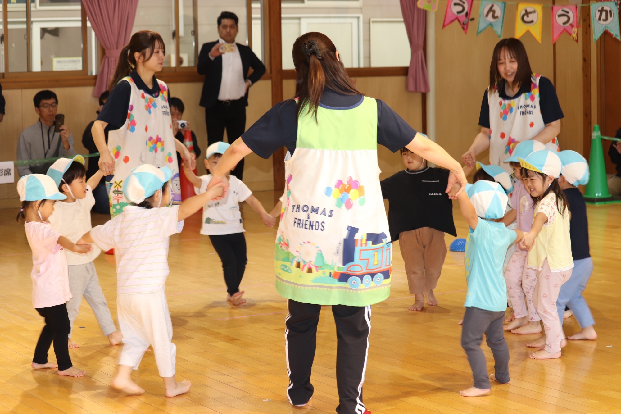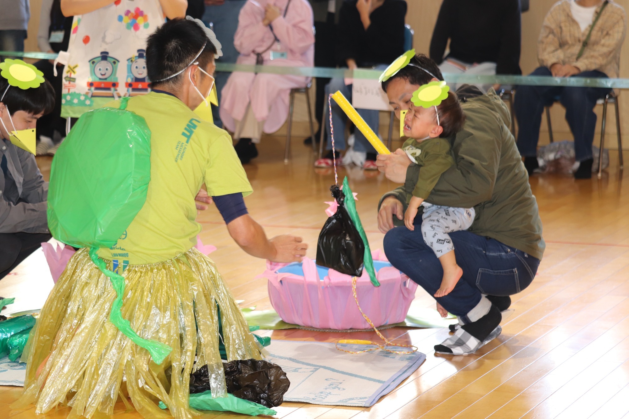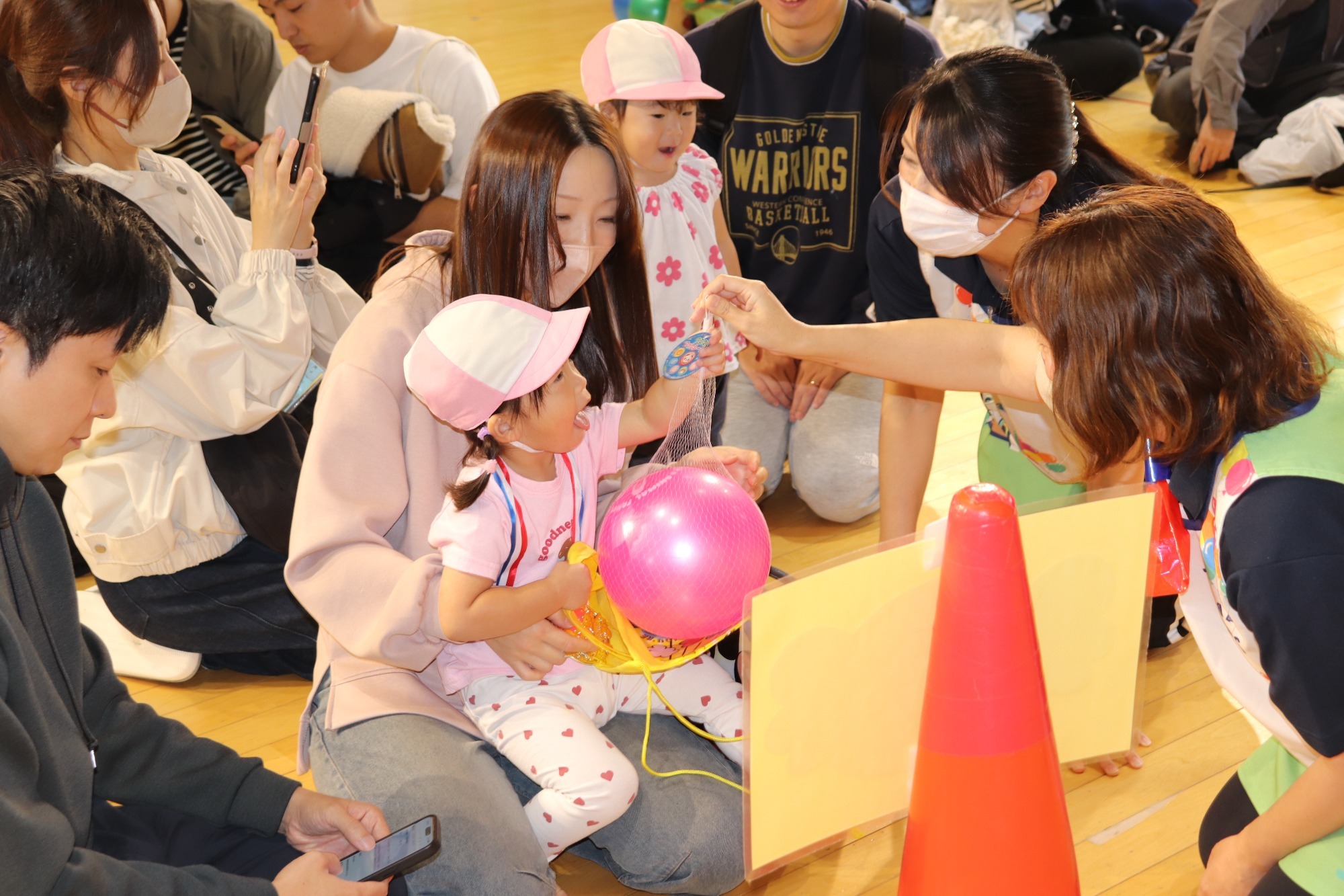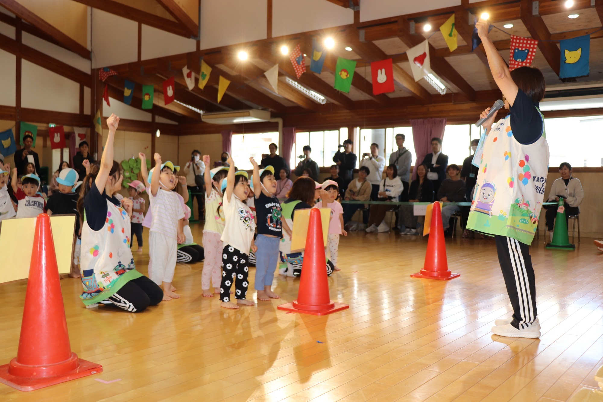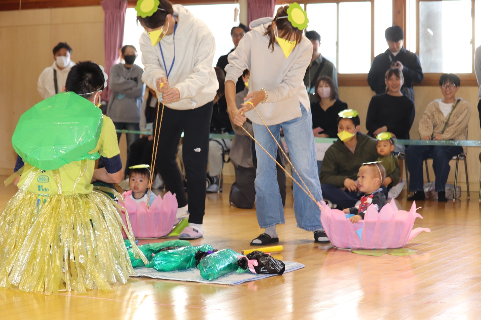 ホールにて保育園のお友だちがミニ運動会を行いました。みんなニコニコ笑顔でよく頑張ったね!(^_-)-☆