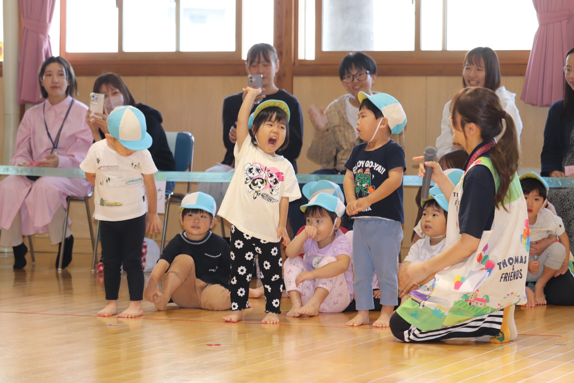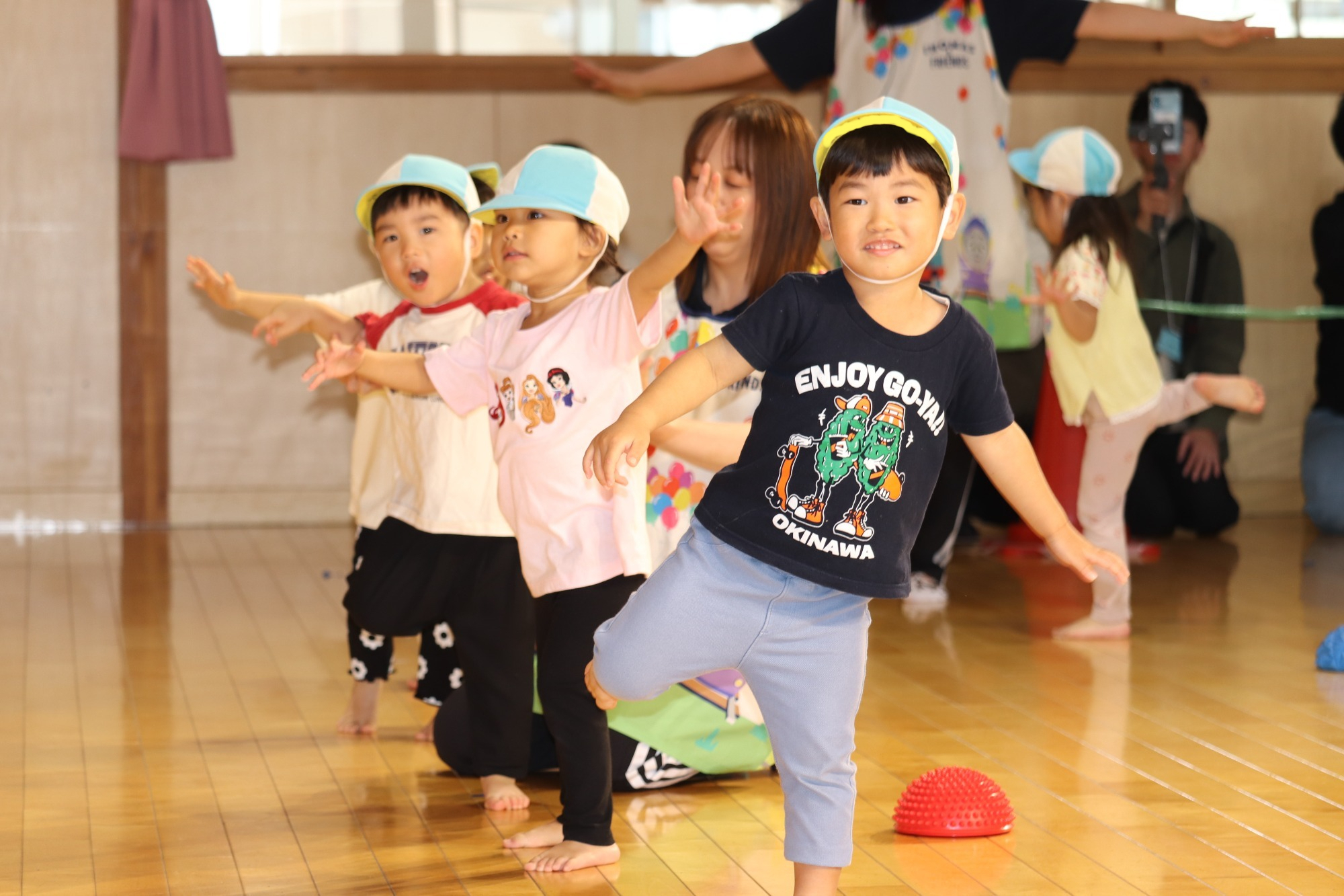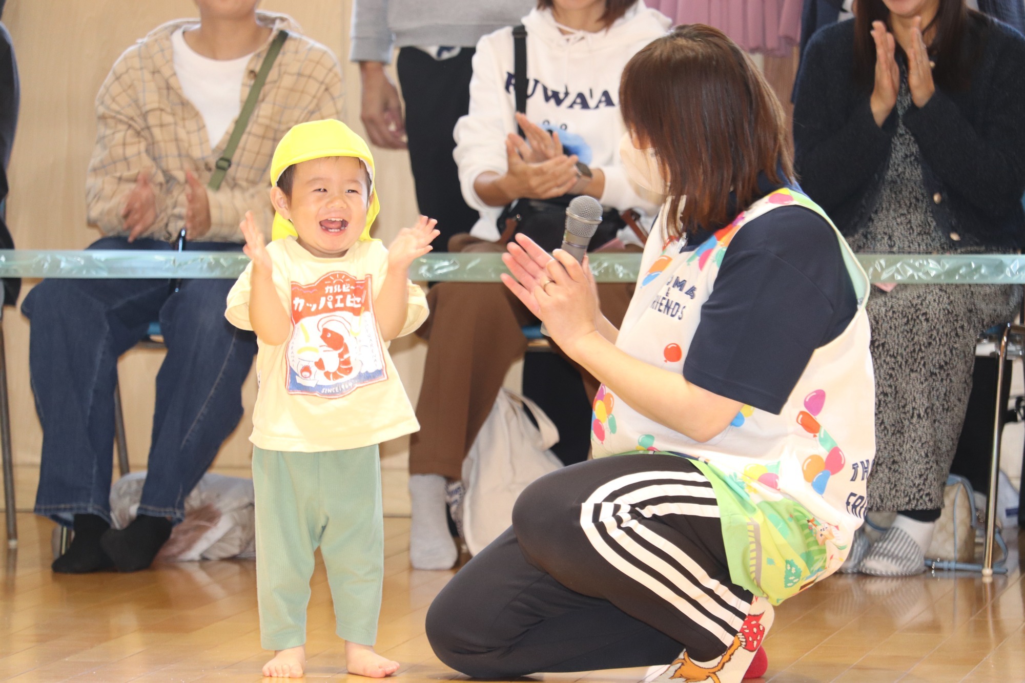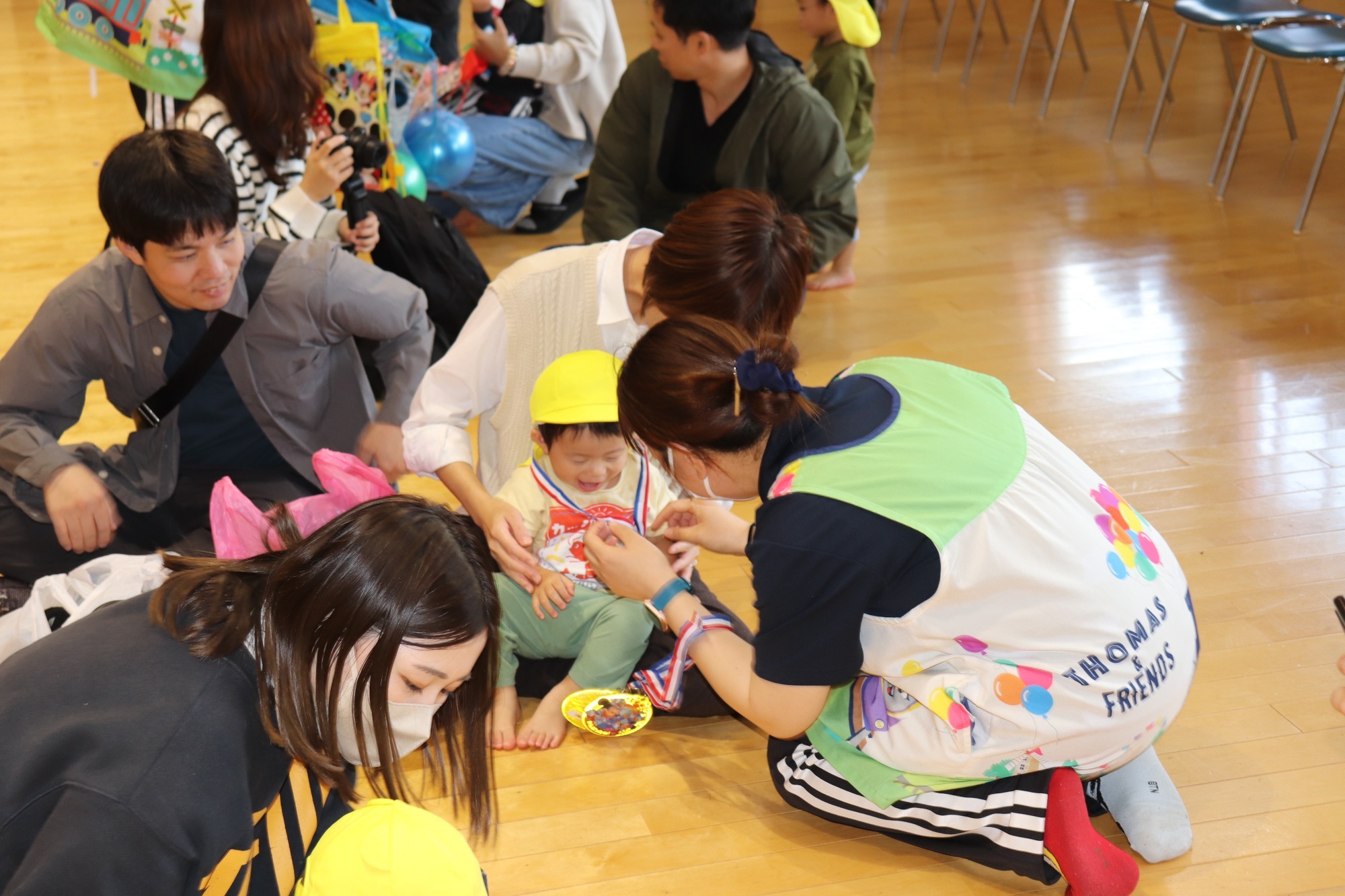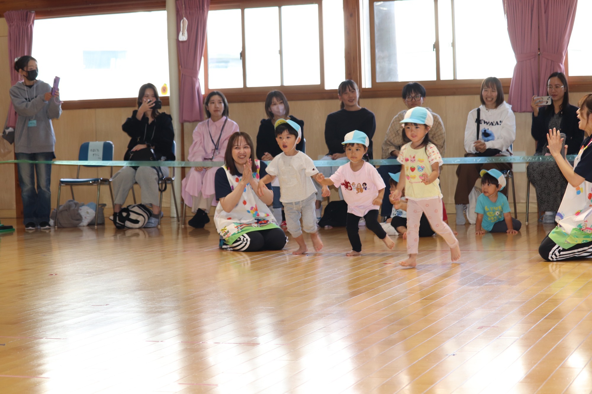 ホールにて保育園のお友だちがミニ運動会を行いました。みんなニコニコ笑顔でよく頑張ったね!(^_-)-☆