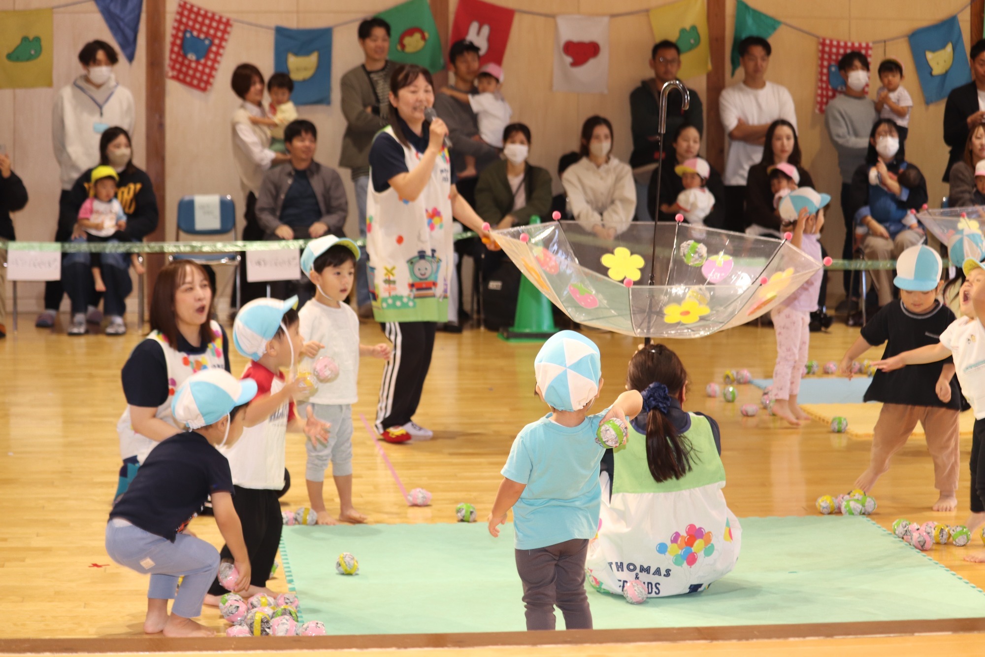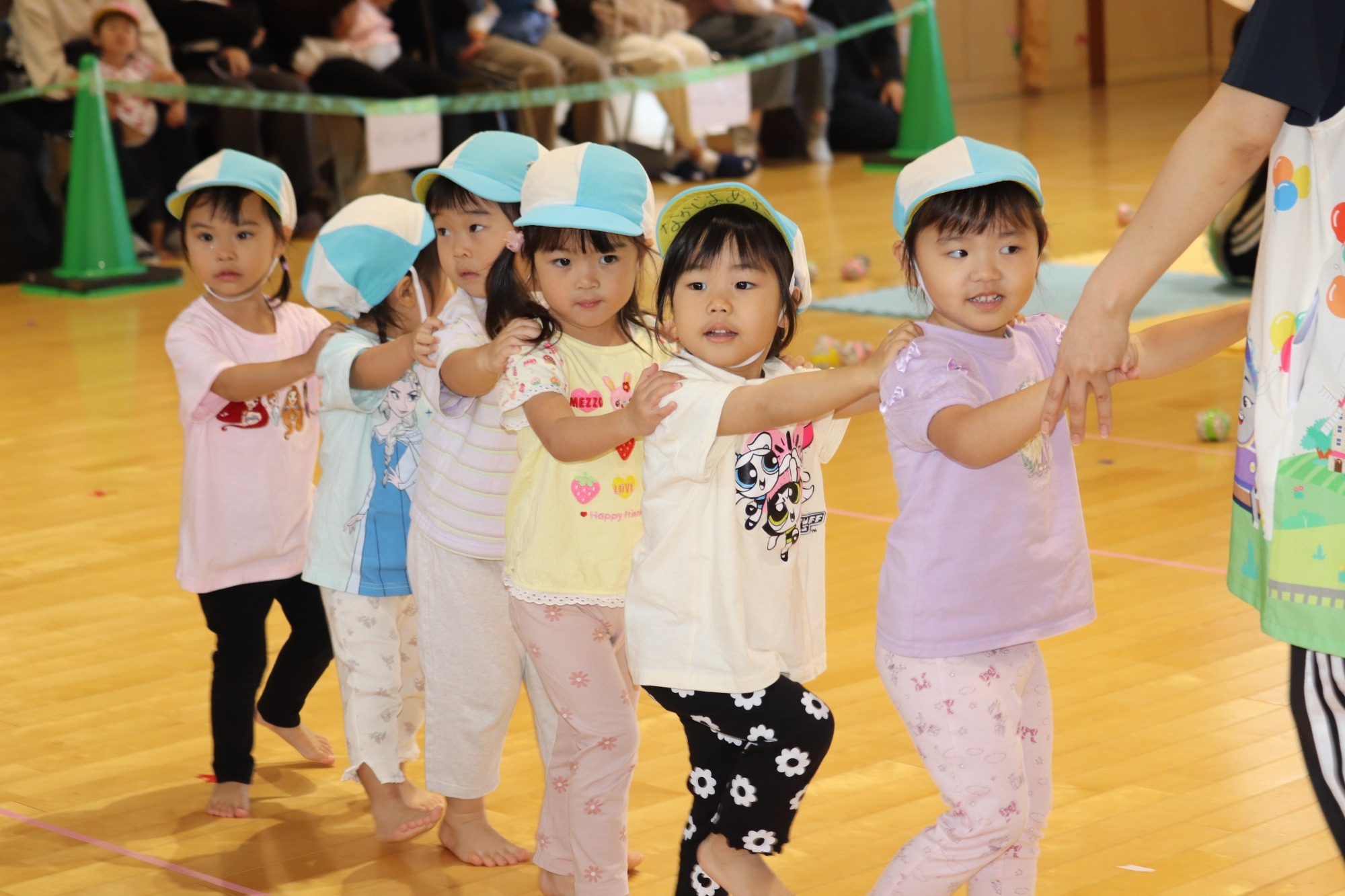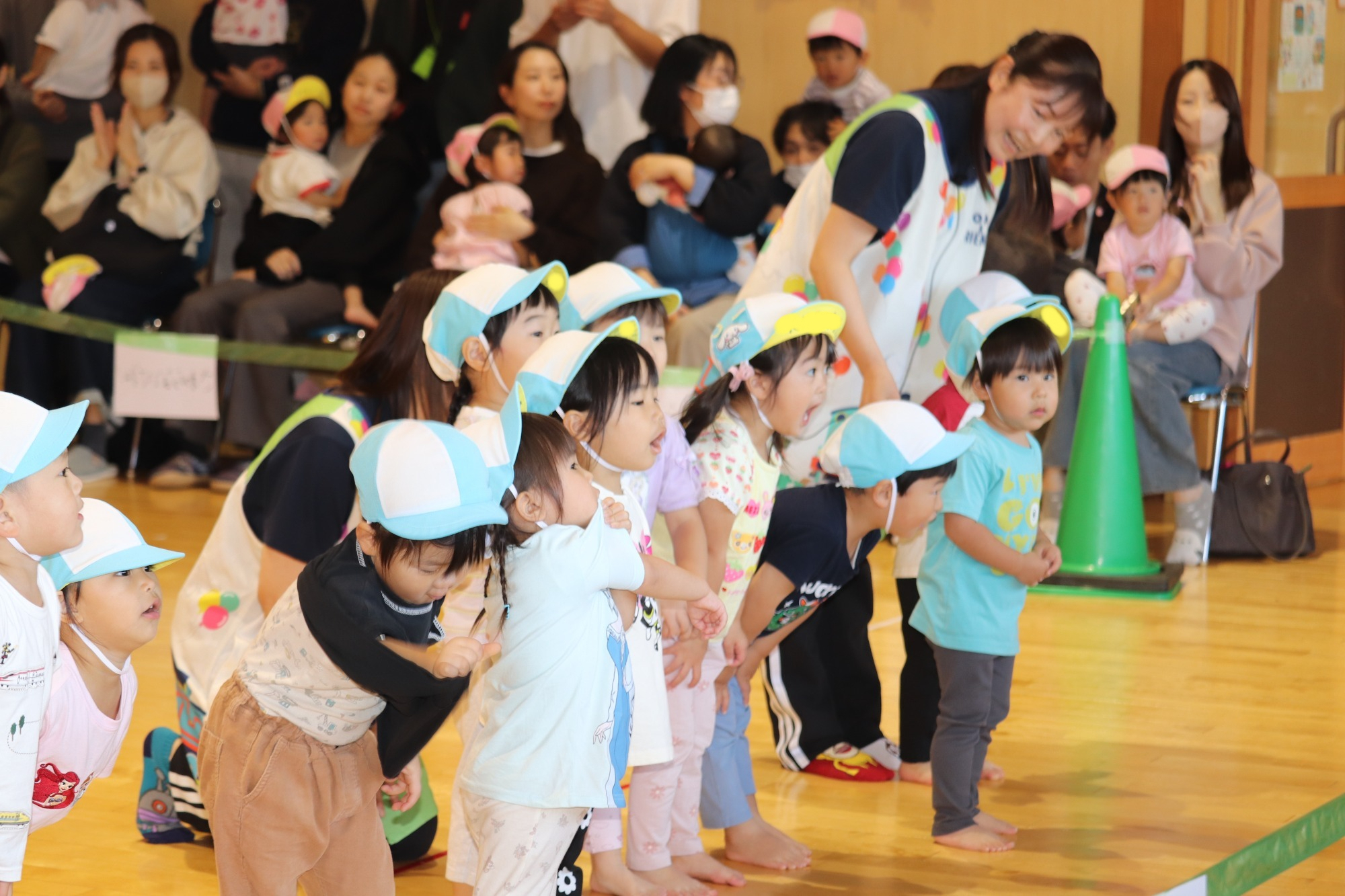 10月30日(水)保育園の可愛い子どもたちによる運動会がホールにて行われました。今年もたくさんの保護者の方々に参加していただき、親子一緒に体を動かしながらとても楽しい時間を過ごすことができました。子どもたちが元気よく色々な競技を頑張る姿に保護者の皆さんも大きな成長を感じ、とても感動されたことと思います(T_T) 普段と違った表情もたくさん見られ、うれしい笑顔があふれる運動会となりました!!(^_^)/