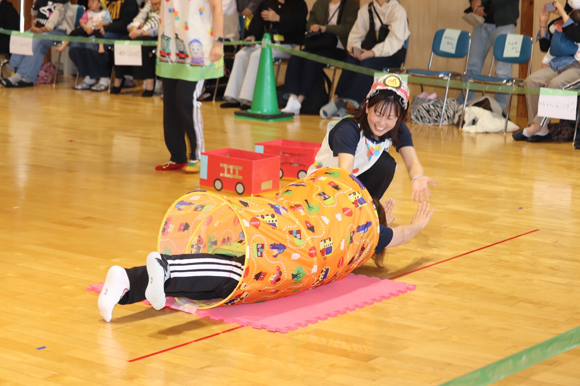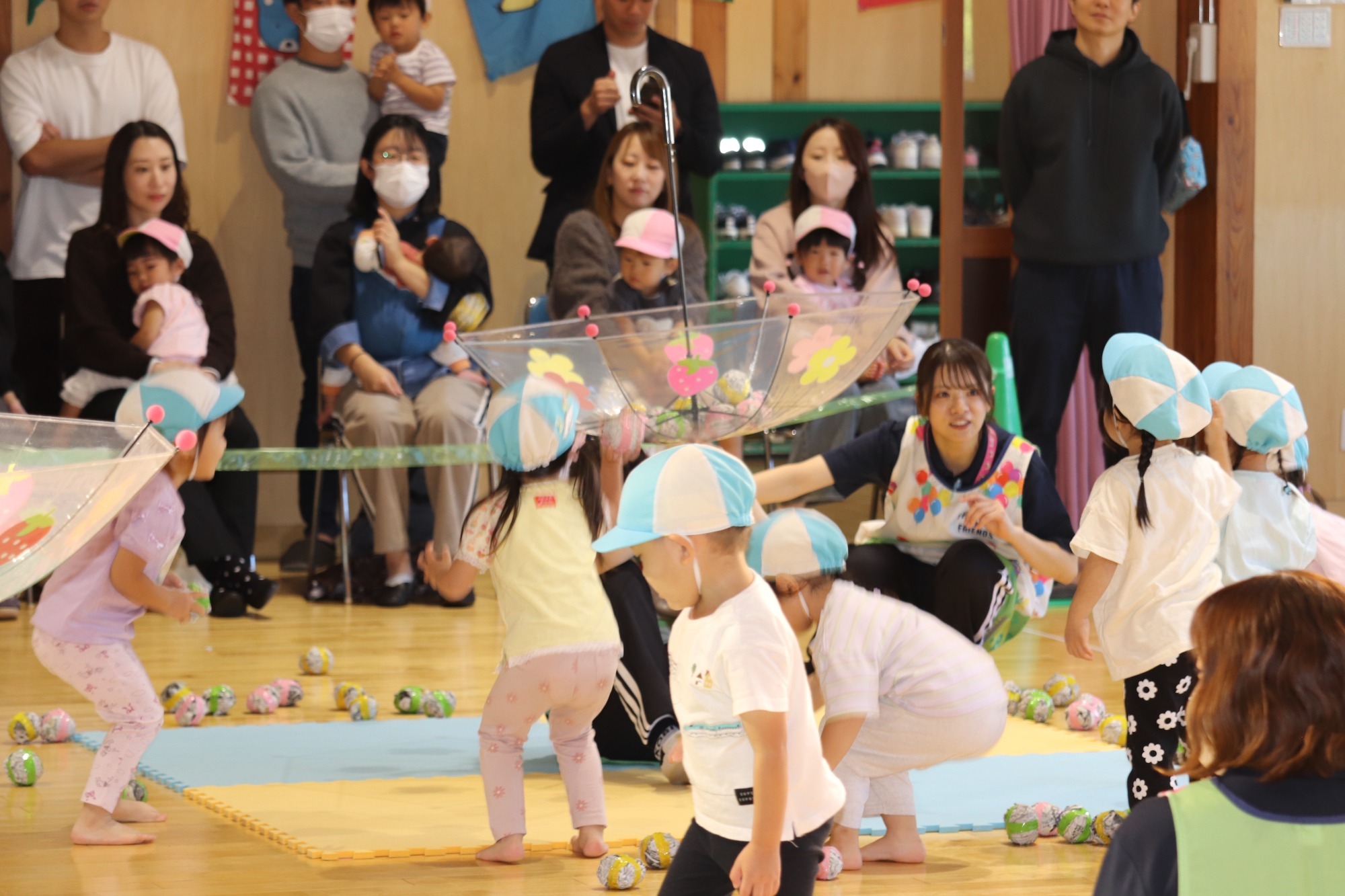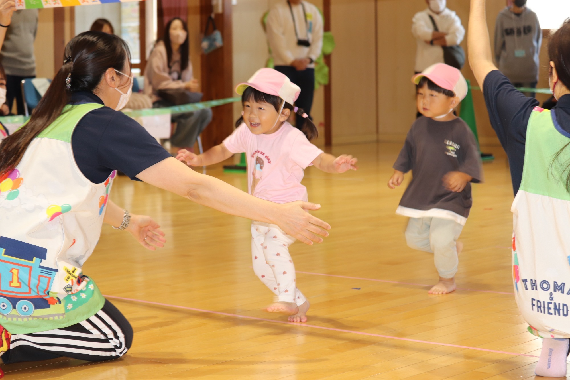 10月30日(水)保育園の可愛い子どもたちによる運動会がホールにて行われました。今年もたくさんの保護者の方々に参加していただき、親子一緒に体を動かしながらとても楽しい時間を過ごすことができました。子どもたちが元気よく色々な競技を頑張る姿に保護者の皆さんも大きな成長を感じ、とても感動されたことと思います(T_T) 普段と違った表情もたくさん見られ、うれしい笑顔があふれる運動会となりました!!(^_^)/