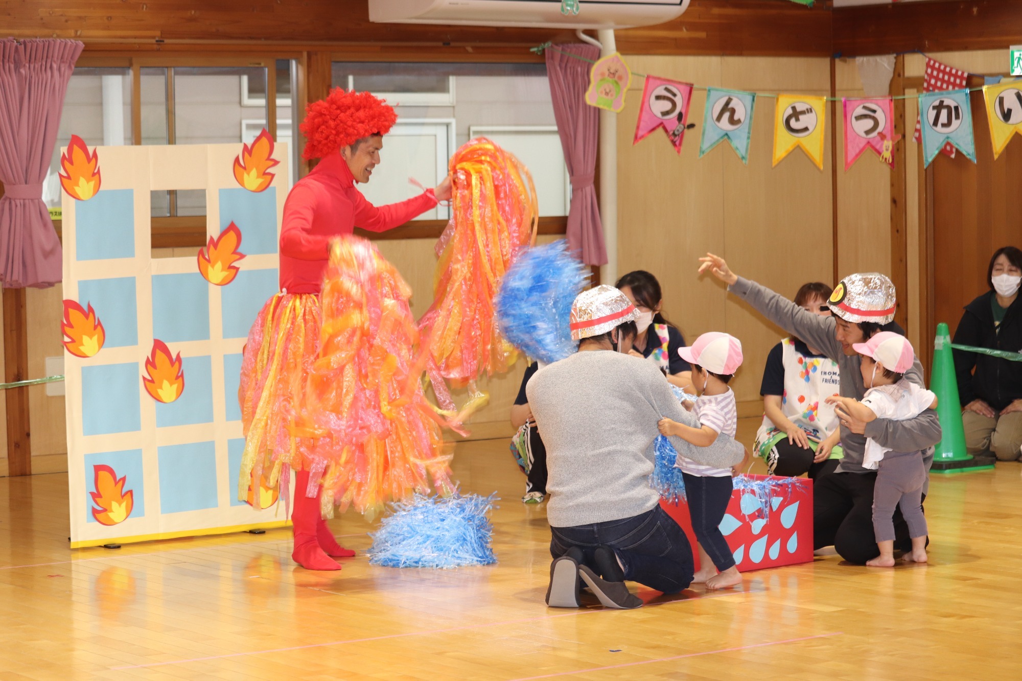 12月5日(土)ホールにておゆうぎ会が行われました。本番に向け、毎日たくさんの練習を重ねてきた園児たち! 笑顔の中にも少し緊張した姿が見られ、ダンスや劇もカッコよく、可愛らしくとても素敵な演技にそれぞれの成長を感じました。当日は保護者の皆様にご協力頂き、各クラスごと観客人数を制限した入れ替え制にし、入れ替え時の換気や感染症対策など様々な取り組みを行いました。子どもたちにとって、とても思い出に残るおゆうぎ会が行えましたね!! ありがとうございましたm(__)m