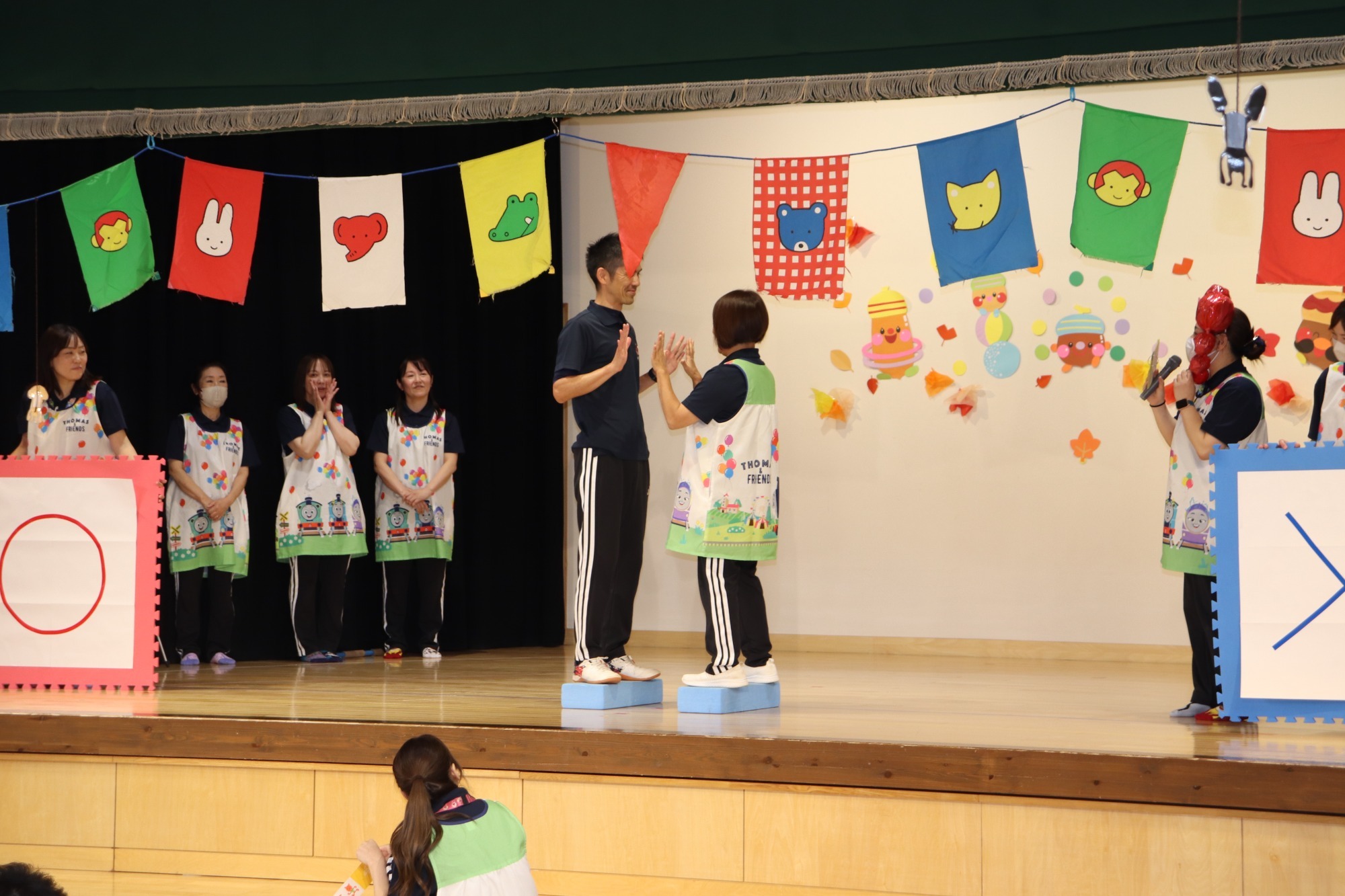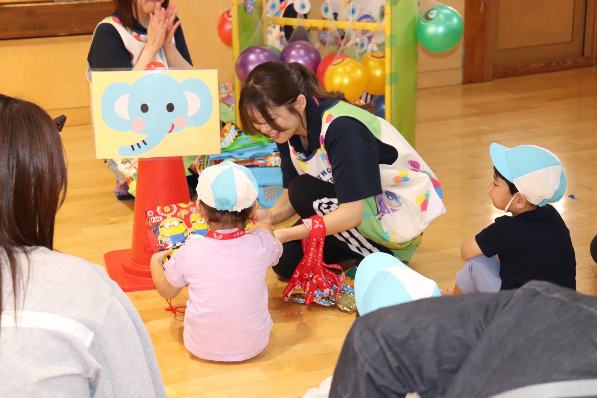 10月29日(水)保育園の可愛い子どもたちによる運動会がホールにて行われました。今年もたくさんの保護者の方々に参加していただき、親子一緒に体を動かしながらとても楽しい時間を過ごすことができました。子どもたちが元気よく色々な競技を頑張る姿に保護者の皆さんも大きな成長を感じとても感動されたことと思います(T_T) 普段と違った表情もたくさん見せてくれましたね!(^_^)/! 園長先生や担任の先生達も色々なコスチュームを身にまとい頑張りました!! 閉会式では先生たちからご褒美のピカピカメダルをもらい、うれしい笑顔があふれる運動会となりました!!