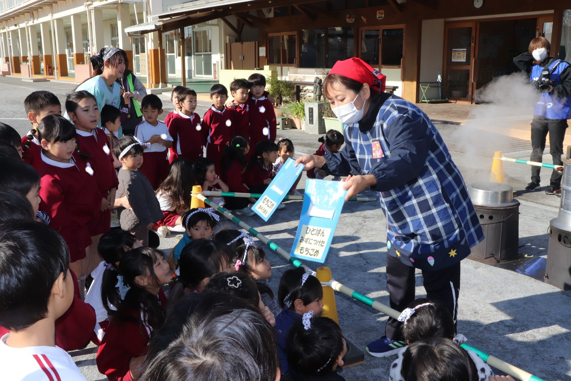 1月24日(金)全園児対象の防災訓練を実施しました。給食調理室からの火災発生を想定し、消火・通報・避難の訓練を行いました。2階教室の子どもたちは非常滑り台を落ち着いて滑りおり、他の園児たちと共に園庭に速やかな避難をし、消防署員の方のお話を真剣に聞いていました。職員による消火訓練を見たり、真っ赤な消防車の色々な装備説明を聞いたり、火災時にどのように行動すれば良いかを子どもたちだけでなく職員も学ぶことができました!(^_^)v