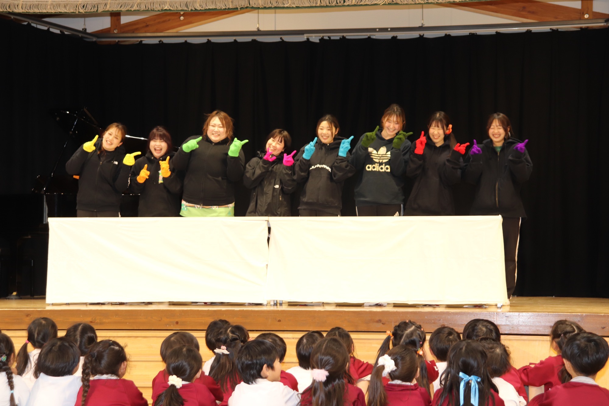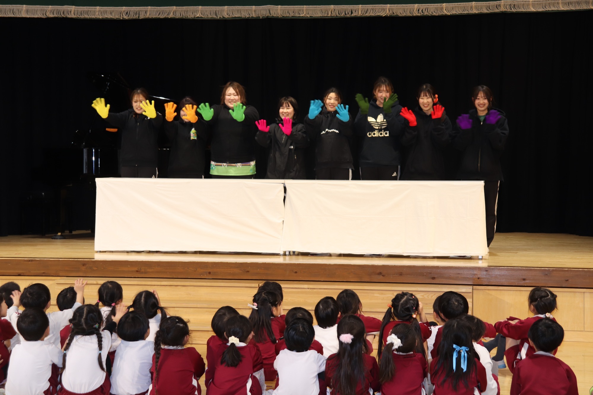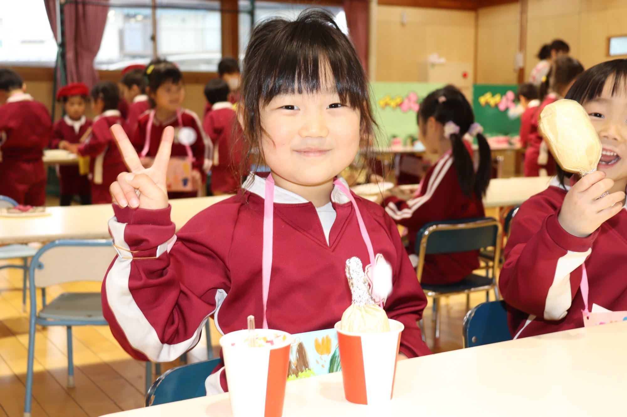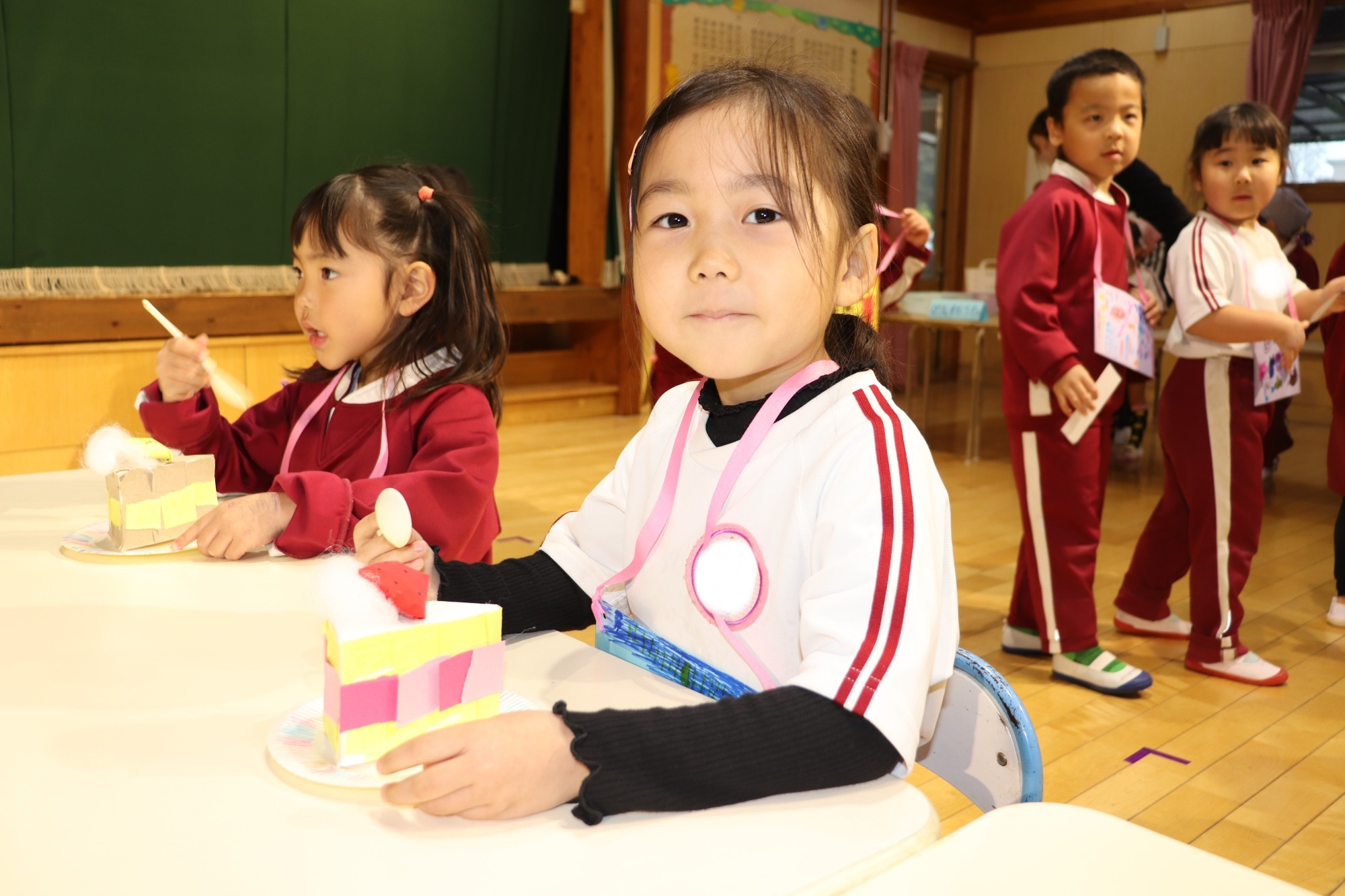 3月3日(月)もうすぐ卒園を迎える年長さん(T_T) 年長さんと一緒に過ごすことも残りわずかとなり、思い出作りのためにお別れ会を行いました。先生たちによる劇『大きなかぶ』をみんなで楽しんだり、お互い歌のプレゼントやお別れのエールを交わし、最後に年中・少さんから年長さんへメダルのプレゼントを贈りました。キラキラのメダルを胸に小学校へ行っても頑張ってね!!(^_-)-☆