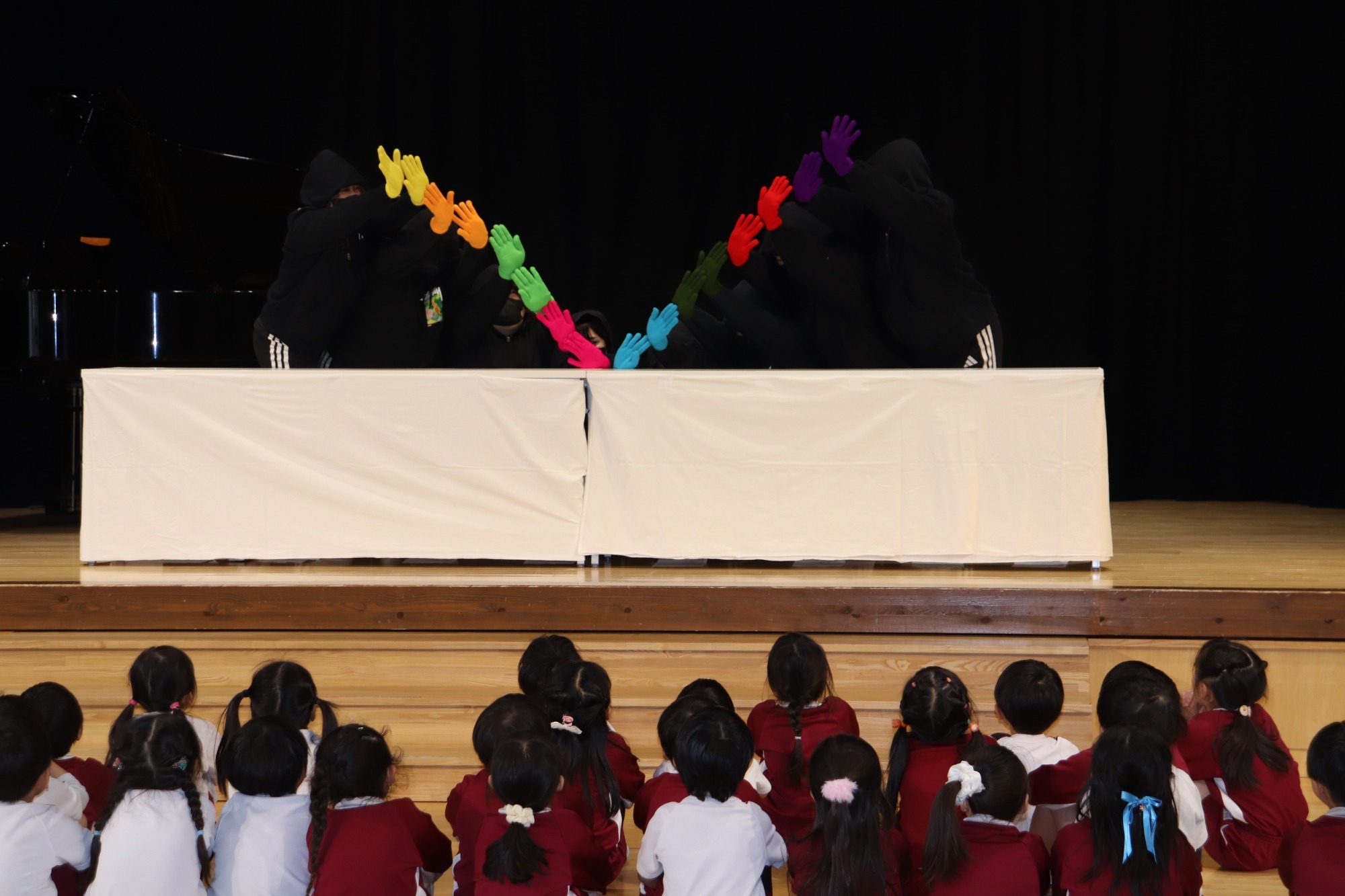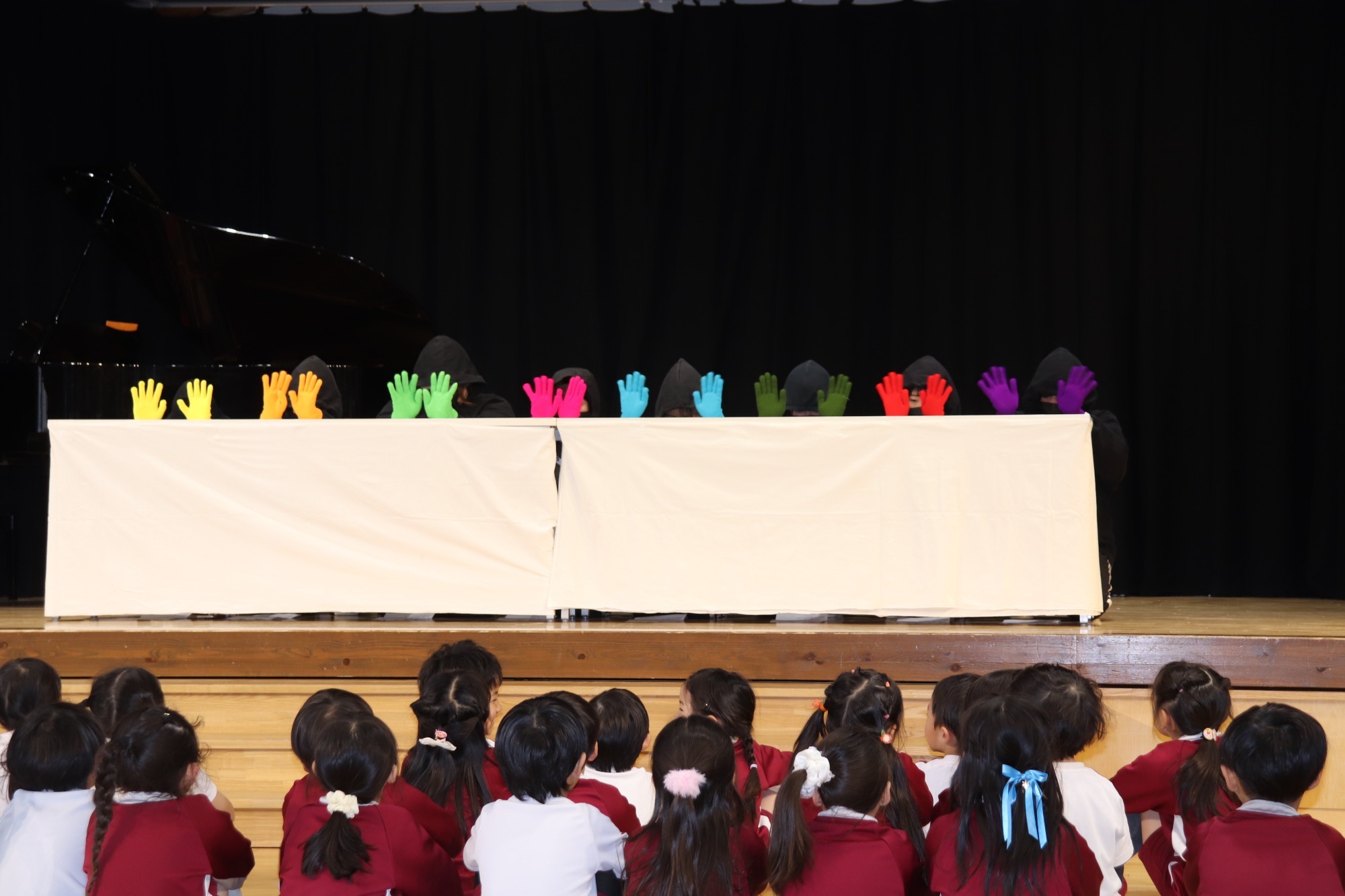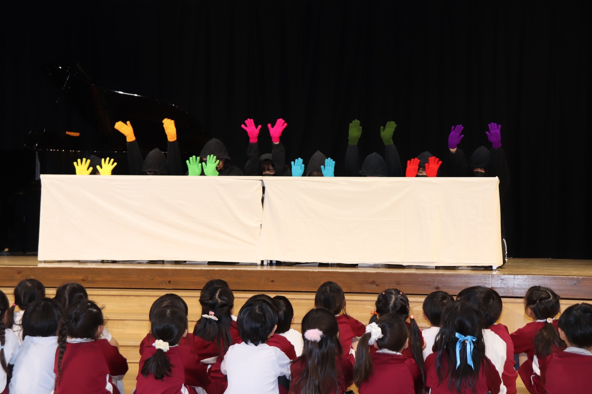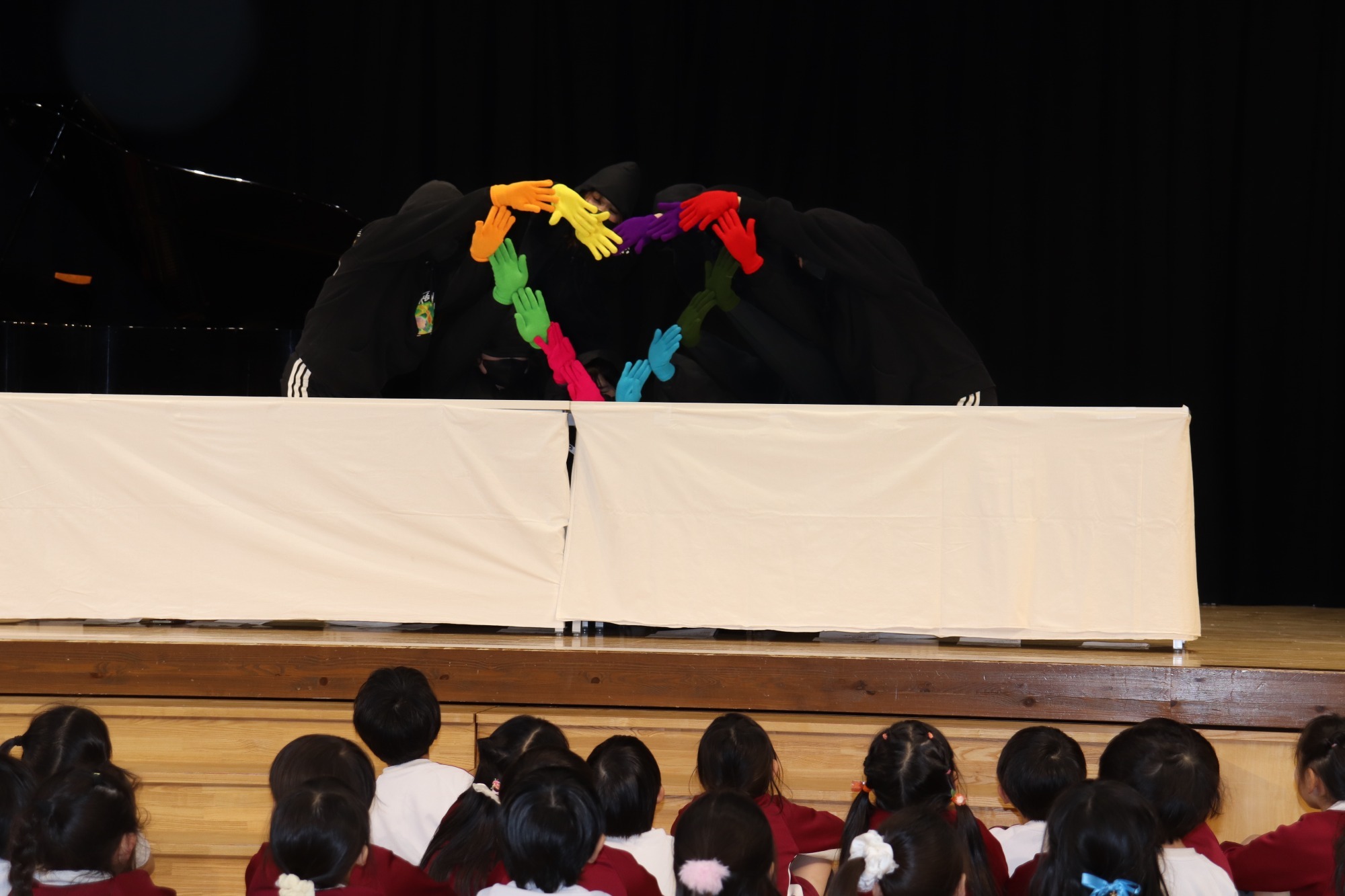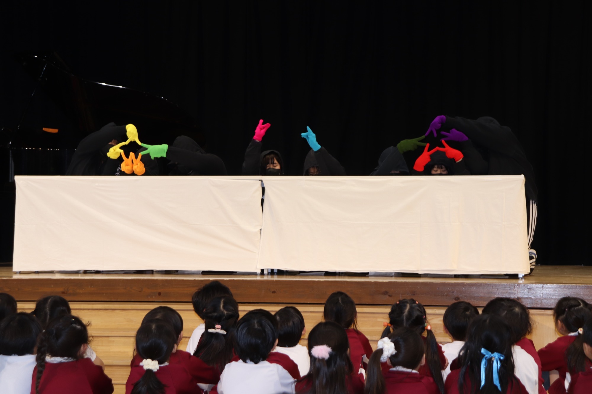 6月7日(月)ホールにて観劇会が行われました。今回は『まちのおんがくやさん』をお招きし、各学年ごと入替え制で楽しい歌やお話をたくさん聞かせてもらいました。子どもたちも一緒に歌ったり、色々な手遊びに夢中になって参加したり、笑顔いっぱいの楽しい時間を過ごしました!!\(^o^)/