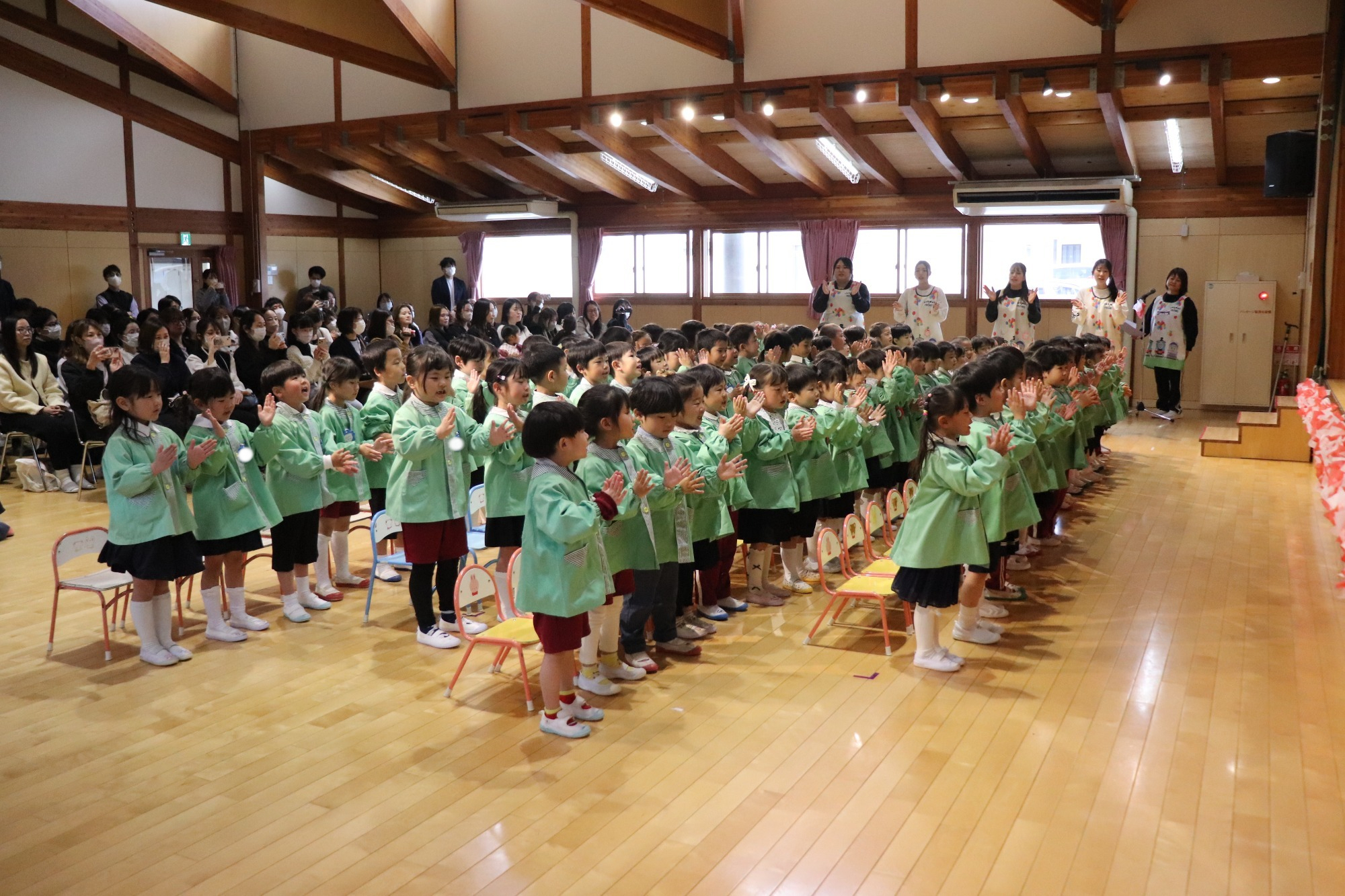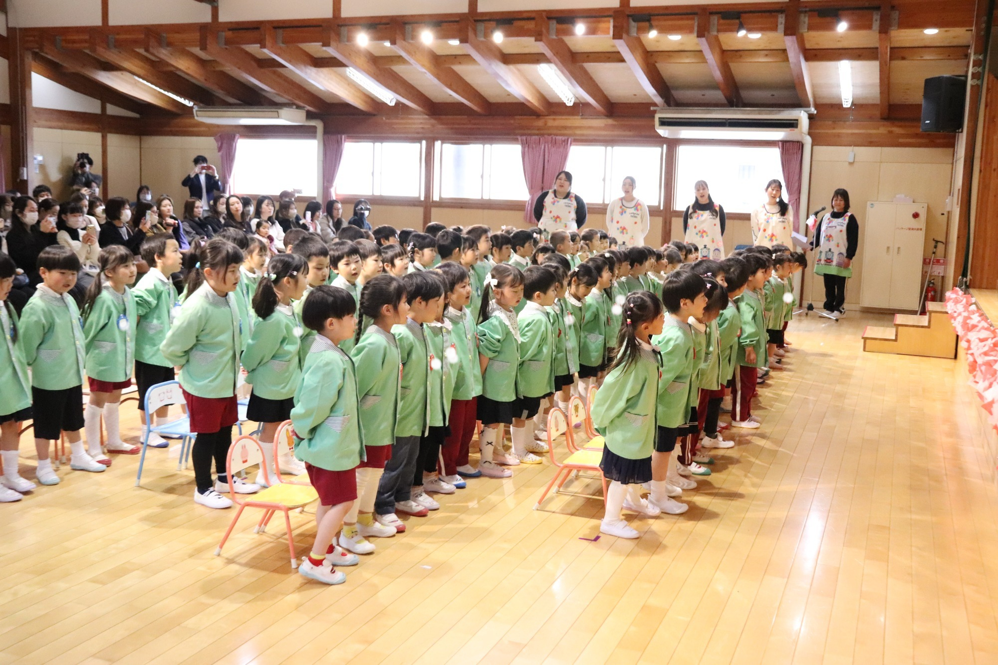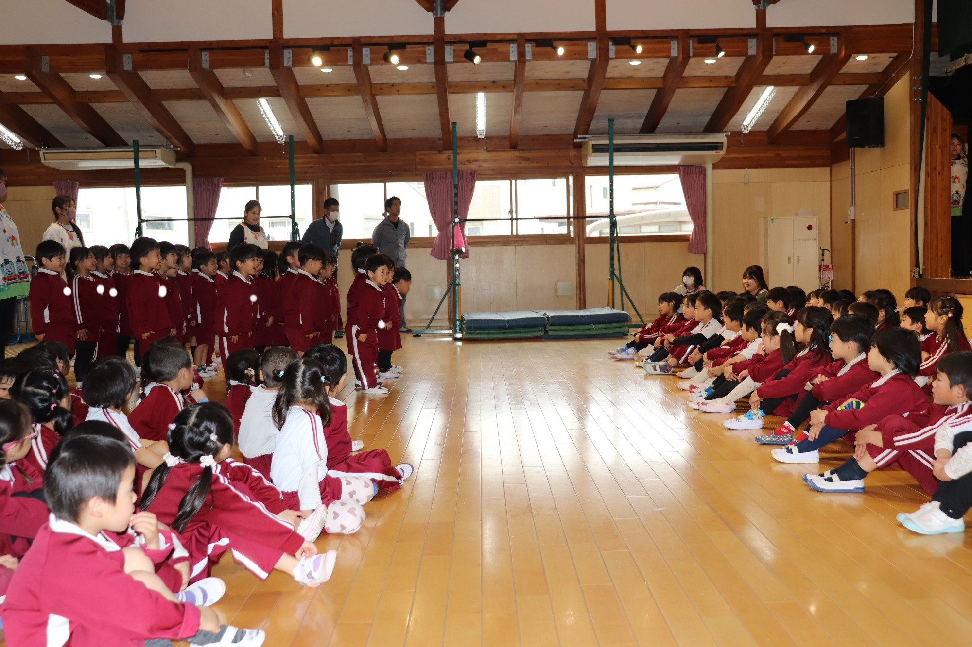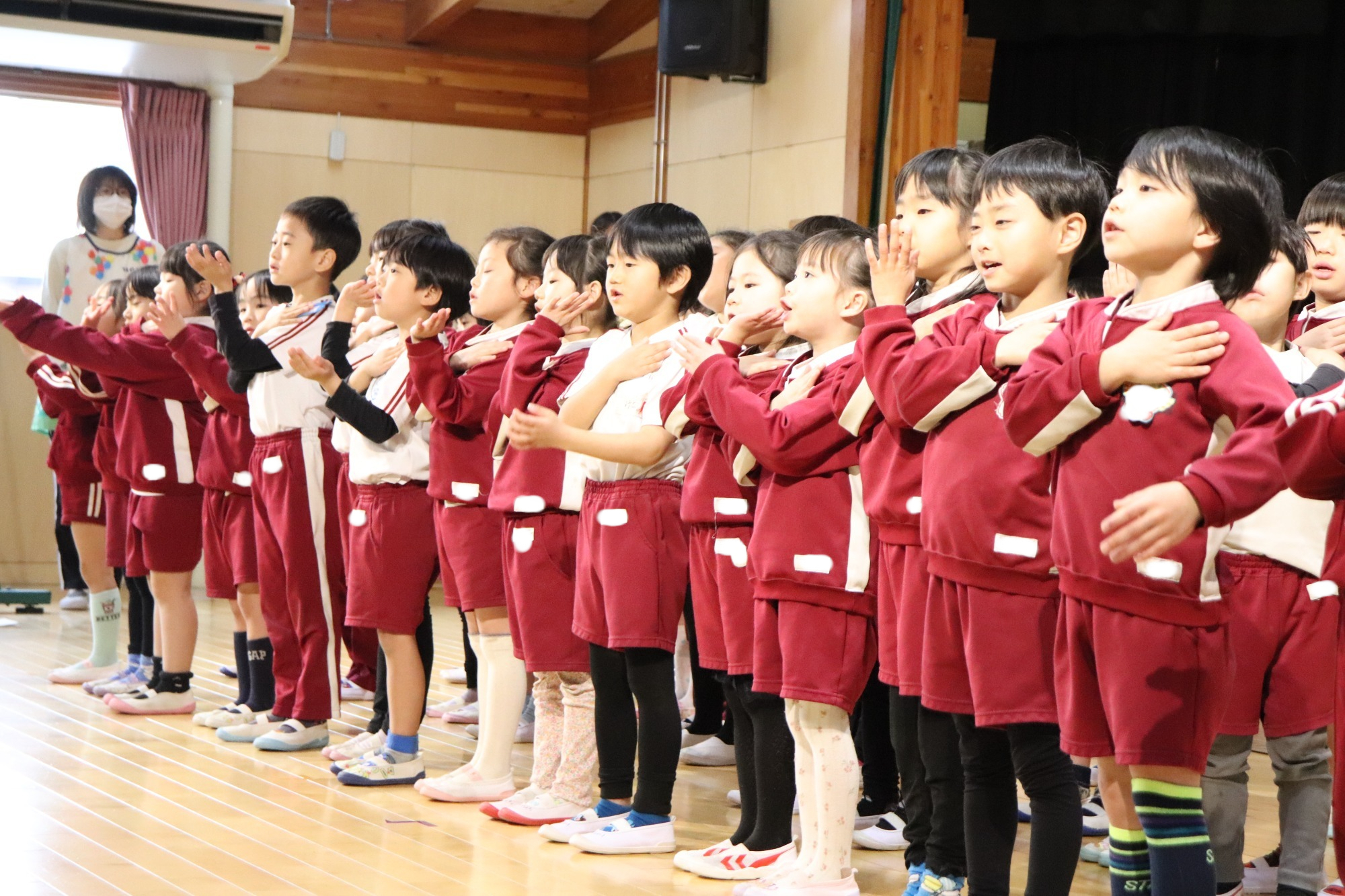 3月19日(木)ホールにて3学期終了式を行いました。今年度も子どもたちはたくさんの仲間と共に協力しながら練習や活動を楽しんでくれました。お約束をきちんと守り、園長先生のお話を聞いている園児たちの成長を感じ、職員一同とても嬉しく思います。保護者の皆様には様々なご理解ご協力頂き、ありがとうございました。新年度もよろしくお願いいたしますm(__)m
