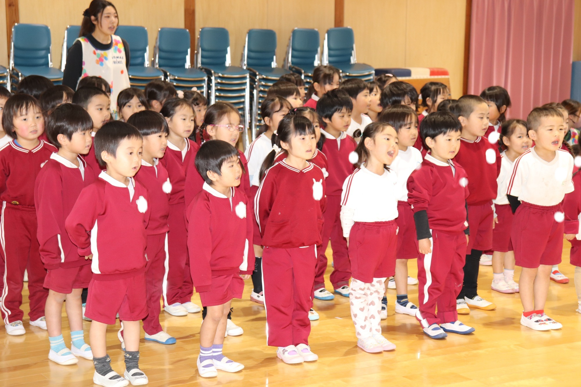 18日(金)園庭にて2学期の終了式を行いました。感染防止対策としてマスク着用、園児の間隔を空け会話はしないように気をつけ短時間で行いました。全園児一斉に集まることがなかなか難しい状況ですが、お約束をきちんと守り、園長先生のお話を聞いている園児たちの成長を感じ、職員一同とても嬉しく思います。保護者の皆様には今年も一年間様々なご理解ご協力頂き、大変お世話になりました。良いお年をお過ごし下さいm(__)m
