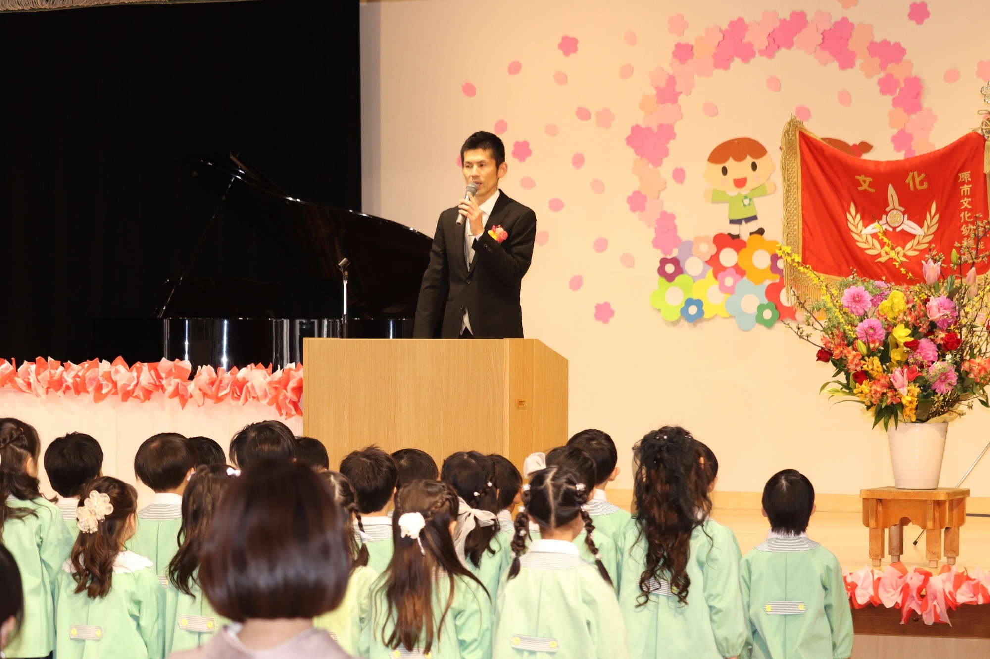 3月16日(月)年長児43名の園児たちが原市文化認定こども園を巣立って行きました。今日まで共に過ごし見守ってきた先生たちも、たくましく大きく成長した子どもたちの姿に、たくさんの思い出が蘇り涙が溢れます・・・(T_T) 園生活での楽しいこと、嬉しいこと、悲しいこと、つらかったこと・・・ 色々な学びと経験が子どもたちを成長させてくれたことと思います。