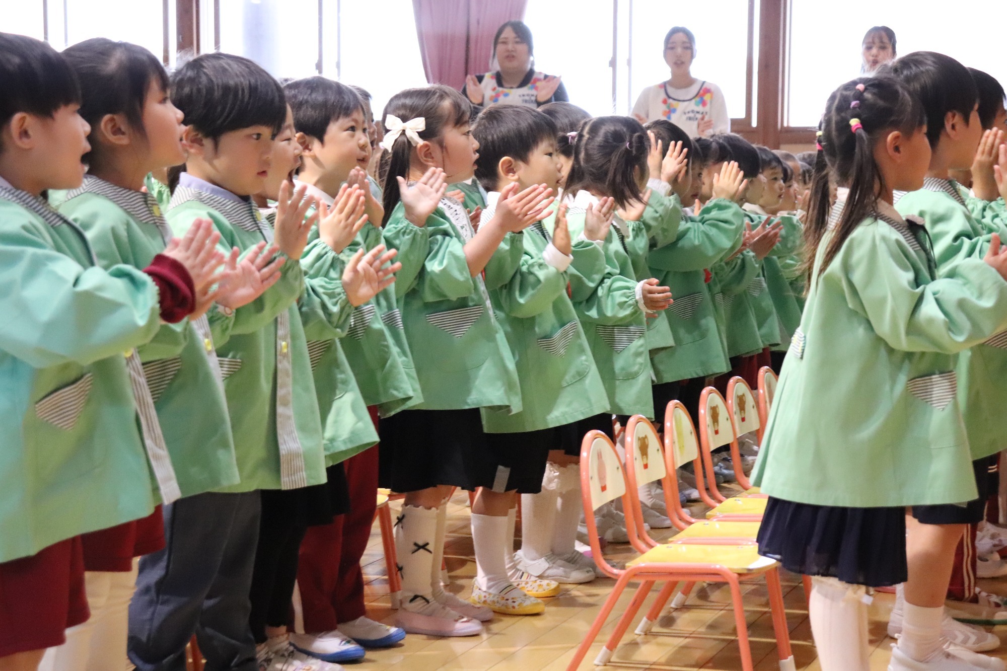3月19日(水)ホールにて3学期終了式を行いました。今年度も子どもたちはたくさんの仲間と共に協力しながら練習や活動を楽しんでくれました。お約束をきちんと守り、園長先生のお話を聞いている園児たちの成長を感じ、職員一同とても嬉しく思います。保護者の皆様には様々なご理解ご協力頂き、ありがとうございました。新年度もよろしくお願いいたしますm(__)m